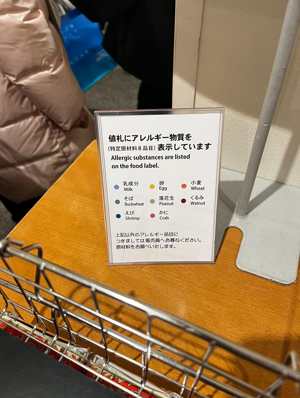 알러지 유발 물질이 색깔로 표기되어있다. 이 제품에는 우유, 달걀, 밀가루 함유되어있다는 뜻.