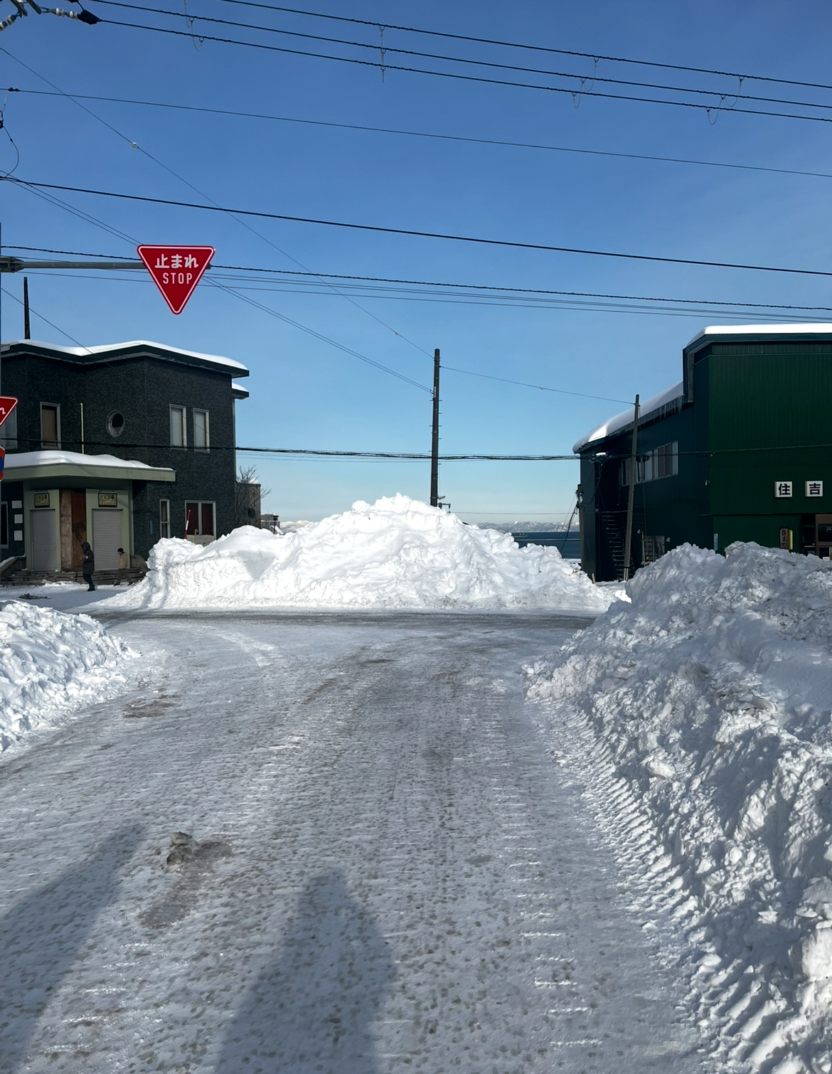 역에서 나와서 시내로 가는 길, 바다가 보이기 시작